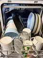 - 上下に設置されているダブルノズルで上下さまざまな角度から水が食器に当たる。最高75度(強力洗浄モード)の熱水での洗浄で油汚れも落ちやすい。