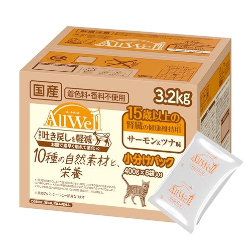 AllWell 10種の自然素材 15歳以上の腎臓の健康維持用 サーモン&ツナ味 3.2kg(400gx8袋) のレビュー・評価