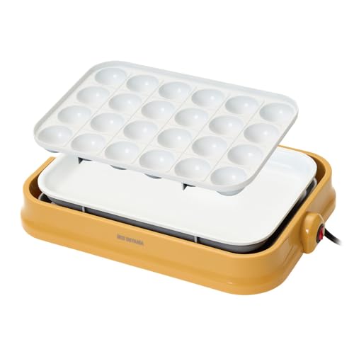 たこ焼き器。 電源オンオフしかないがなかなか使える。 【デザイン】 この大きさのたこ焼きを作る分にはぎりぎりのサイズかと。 色は全3色。 【操作性】 電源オンオフしかないので操作性という操作性はない。 【火力】 非常に強い。 強いて言うと四つ角の四つだけ弱いがこれは仕方ないかと。 【洗いやすさ】 本体から取り外せるので洗う分には問題ない。 【サイズ】 上で書きましたね。 1~4人程度でタコパするならこれで十分かと思います。 【総評】 電源オンオフしかないですがどうにかなります。 むしろ、一万以上のホットプレートのおまけの たこ焼きプレートよりよほどうまく作れる。 たこ焼きをたくさん作りたいという方には非常におすすめ。