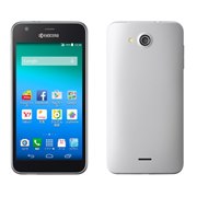 カラーはホワイトを選択。全体的にシンプルで角が無くデザインとしては良い。前面(ディスプレイ上部にKYOCERAのロゴが大きく表記されており、目立ちすぎるのでもう少し小さくても良かったかも。スピーカーが背面に配置されていて少し不便。