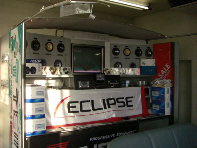 オーディオのデモンストレーションパネルです。 当店はカーオーディオの販売も行なっております。 購入前にここで実際にスピーカーで音を確認していただけます。 昔はアナログでアンプを組んだりと、5.1chにするのに随分お金がかかった ものですが、今は…