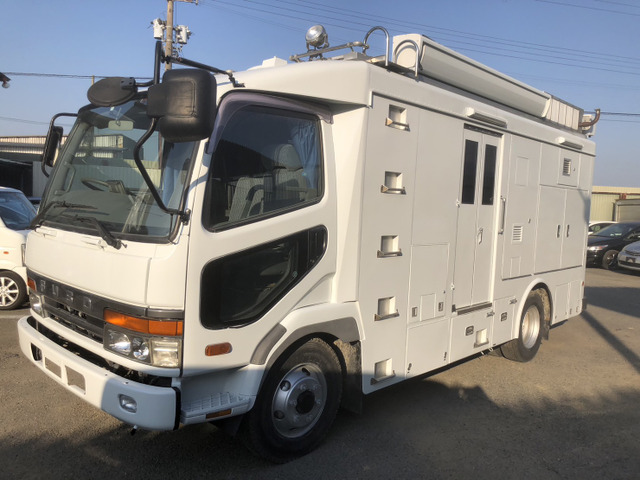 走行距離 18100km 実走行 放送中継車(キャンピングカー・キッチンカーにいかがでしょうか) 型式:KC-FK629G改 エンジン型式:6D17(220PS) 書類上車両総重量:7960kg(後部内装装備品外している分変わっていると思われます。) 書類上車体サイズ:長さ 640cm・幅 229cm・高さ 318cm(車体上部右後方のポール、少し上がったまま作動しないため少し高くなっています。) *車体下部ジャッキ作動します。 *全タイヤスタッドレスタイヤ装着。 *左後部サブエンジンバッテリーつないでも作動しません。 *サイド天幕作動しません。 *バッテリーあがり(お引渡しの際は、おいがけにてエンジンかけさせていただきます。) (ご購入後バッテリーサイズ:95D31Rもしくは115D31Rを送っていただければ付け替えさせていただきます。) ☆企業情報☆ 株式会社 片岡オート 所在地:兵庫県三木市別所町下石野1313 (TEL) 0794-83-4446 (FAX) 0794-83-4449 ◆取扱車輌タイプ◆ 低床、高床、ト…