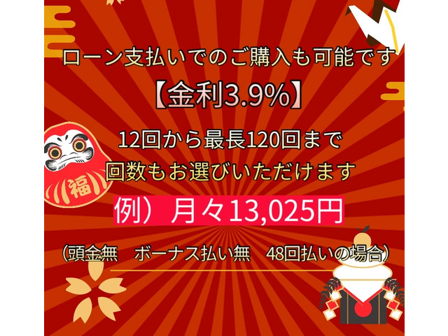 ご覧頂きありがとうございます。 装備品:純正ナビ・TV(走行中作動)・スマートキー・ETC・スペアタイヤ 定期点検整備後お渡しさせていただきます。 ■この車への「お問合せ」・「無料見積り依頼」、「在庫確認」は、お気軽にどうぞ! ■この車両以外にも「車選びドットコム」におすすめの中古車を掲載しております。 他の在庫車種、お店へのアクセスは【販売店情報ページ】をご覧ください。 問合わせ・来店の際には「中古車情報サイト(車選びドットコム)を見た」とお伝えください。 店頭商談中・売約済の場合もありますので、ご来店の際は事前にお問合せ頂き、該当車両の有無をご確認ください。 スタッフ一同、お客様からのお問合せをお待ちしております。