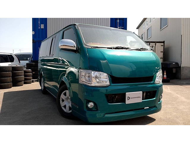 H.25(2013)年 トヨタ ハイエースバン 3.0 DX ロング ディーゼル 4WD AT グリーン 走行188,500km ・オールペイント ・内装張替 ・ローダウン ・ワンオフエアロ ・車幅、全長、公認済 ご覧頂きありがとうございます。 ■この車への「お問合せ」・「無料見積り依頼」、「在庫確認」は、お気軽にどうぞ! ■この車両以外にも「車選びドットコム」におすすめの中古車を掲載しております。 他の在庫車種、お店へのアクセスは【販売店情報ページ】をご覧ください。 問合わせ・来店の際には「中古車情報サイト(車選びドットコム)を見た」とお伝えください。 店頭商談中・売約済の場合もありますので、ご来店の際は事前にお問合せ頂き、該当車両の有無をご確認ください。 スタッフ一同、お客様からのお問合せをお待ちしております。