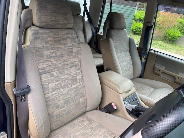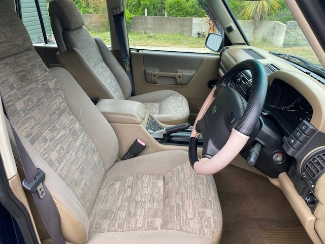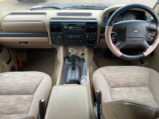 在庫確認・見積もり依頼ディスカバリー V8i ES 4WD 本革パワーシート Wサンルーフ 7人乗り 18インチアルミ ABS ETC リアエアサス 天張り張替済 社外フロントバンパー