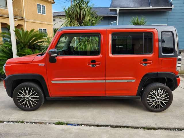スズキのハスラーをお勧めします!この中古車は、令和3年式で22,000kmしか走行しておらず、修復歴もなしです。ボディカラーはオレンジIIブラックの軽RVで、ABSやバックカメラはもちろんのこと、全周囲カメラや横滑り防止装置、アイドリングストップ、盗難防止装置、シートヒーターなど、充実の装備がついています。 そして、この車両のお勧めポイントは、全周囲カメラです!バックカメラに加え、フロント、側面、リアにカメラが装備され、とても便利です。また、たばこ臭いも一切しないので、快適なドライブが可能です。保証もついており、安心して購入することができます。是非、このハスラーで憧れの車生活をはじめてください!