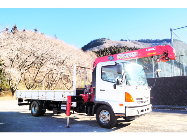 ヒノレンジャー タダノ製 ZE304 4段クレーン フックイン 2.93t吊 ラジコン付 平ボディ 三方開 軽々ゲート ロープホール 積載2.75t ターボ210馬力 ETC