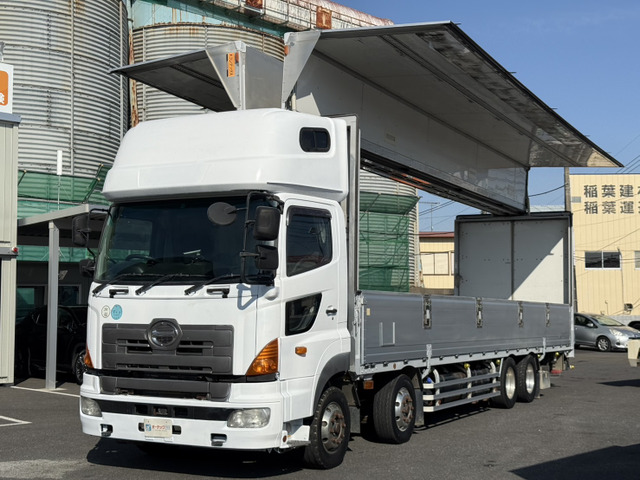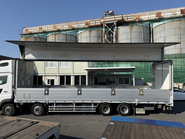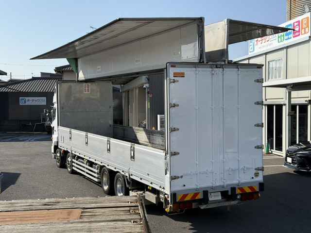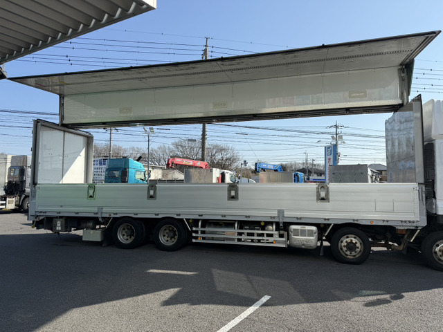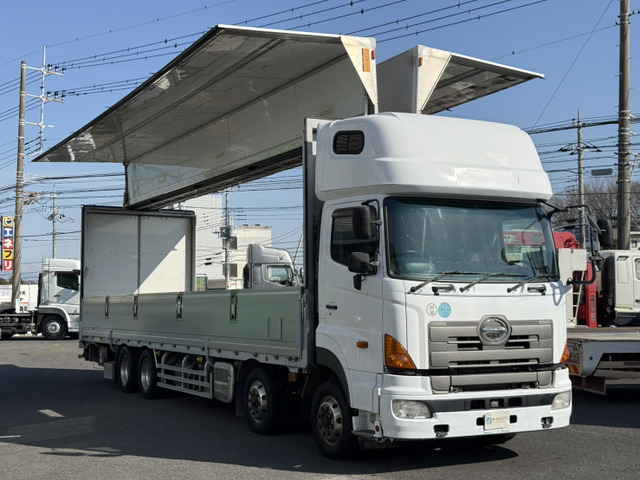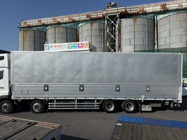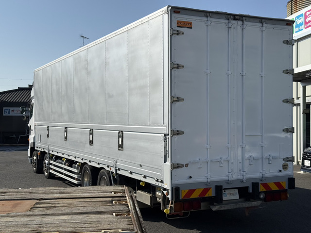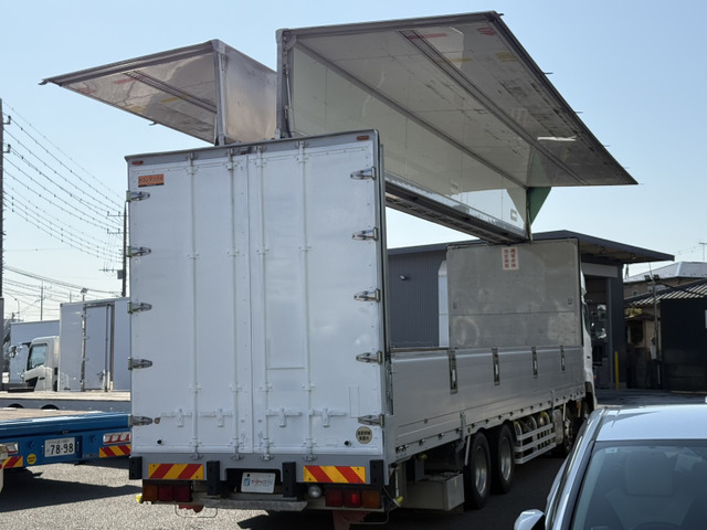 ご覧頂きありがとうございます。 ■この車への「お問合せ」・「無料見積り依頼」、「在庫確認」は、お気軽にどうぞ! ■この車両以外にも「車選びドットコム」におすすめの中古車を掲載しております。 他の在庫車種、お店へのアクセスは【販売店情報ページ】をご覧ください。 問合わせ・来店の際には「中古車情報サイト(車選びドットコム)を見た」とお伝えください。 店頭商談中・売約済の場合もありますので、ご来店の際は事前にお問合せ頂き、該当車両の有無をご確認ください。 ☆トランテックス製アルミウィング ☆エアーローラー ☆ラッシングレール2段 ☆荷箱内寸 長さ995cm 幅241cm 高さ262cm ☆アルコア製アルミホイール ☆スーパーハイルーフ ☆アドブルー付 ☆燃料タンク メイン200L サブ300L ☆リアエアサス ☆最大積載量13100kg ☆9速マニュアル ☆カラーバックモニター ☆A09Cエンジン 360馬力 スタッフ一同、お客様からのお問合せをお待ち…