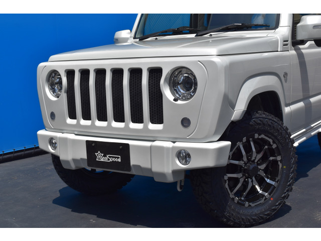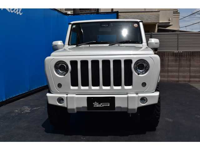 当店オリジナルフロントグリルに専用バンパーでフロントビューが一新! ラングラー風にカスタムしており、迫力のフォルムになっております! 純正イメージをガラリとチェンジで、周りの注目も独り占め! リアバンパーもボディー色に塗装して、当店オリジナルバンパーガーニッシュを取付! 丸目テールにしており、フロントデザインとも合わせた仕様にしました! スペアタイヤカバーもボディー同色にペイント済みです! 純正オプションナビ付です!バックカメラも取り付けられており、ナビ画面でバック画像も見て頂けます! ナビ連動のドライブレコーダーも付いておりますよ!装備も充実で快適にカーライフをお過ごし頂けますよ! ホワイトボディーにボルドー色シートカバーが映える! ヴィンテージ調のカバーになっており、深い色味のボルドーになっております! 車内もオシャレになっており、大変おすすめですよ! 【全国納車多数】 遠方のお客様もご安心ください!当店は…