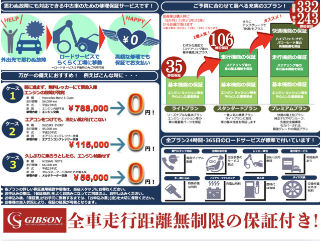 保証が付いています。車両価格には購入後の保証費用が含まれており、保証書が交付されます。保証条件や内容は販売店によって異なりますので、詳しくは各販売店へお問い合わせください。
