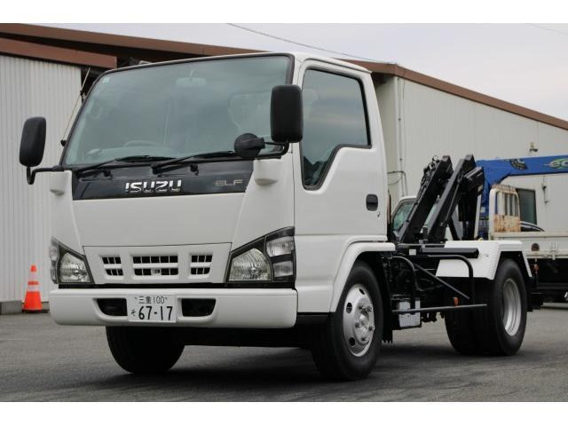 在庫確認・見積もり依頼エルフトラック 2トン Wキャブ 平 垂直パワーゲート 4WD ハイキャブ ロング 三方開 床板張り 坂道発進補助装置 左電格ミラー リアヒーター ETC キーレス 2000kg 6人乗 5MT