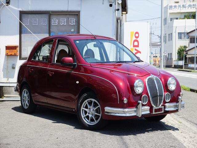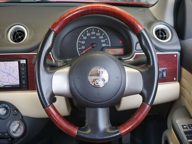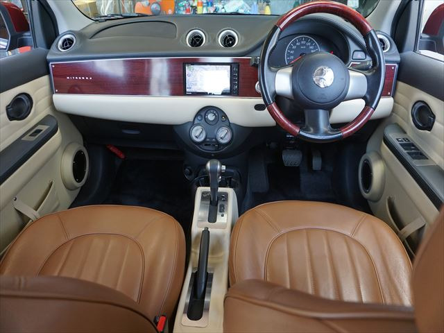ビュート 12ST 光岡車☆オプション専用ウッド×赤革インパネ☆ストラーダSDナビ☆フルセグTV☆DVD再生☆ルームミラー型前後ドラレコ☆ETC☆赤革シートカバー☆禁煙車☆キーレスキー☆