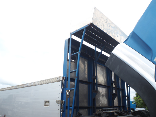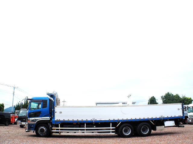 在庫確認・見積もり依頼クオン 3軸高床 三軸高床 造りボディ エアサス アルミブロック平ボディ 鉄板張り 内フック 軽々ゲート 積載13.5t ターボ380馬力 ミッションエスコットV ベッド付き