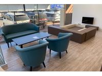 『ショールーム』常時換気、椅子机の消毒、パーテーションの設置、スタッフの検温などを行っています。
