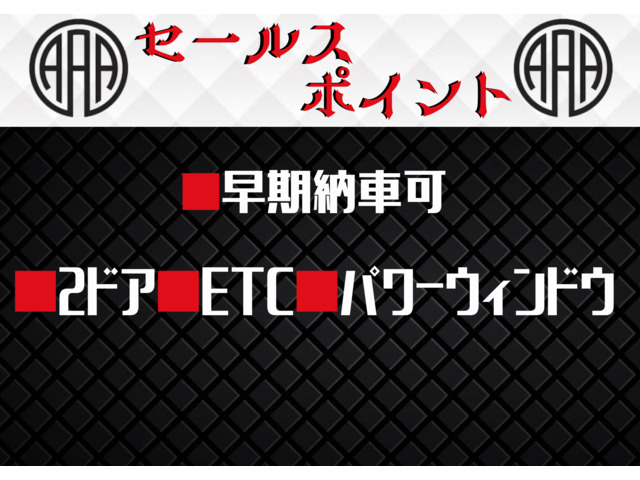 ★ご高覧頂きありがとうございます!★ ■早期納車可 ■2ドア ■ETC ■パワーウィンドウ ★走行無制限12ヶ月無料保証付 *保証費用は本体価格に含まれています。 保証詳細★下記は不具合ではありません。保証内容になります★ 『*警告チェックランプ常時点灯(エンジン警告灯・ABS警告灯・油圧警告灯・充電警告灯・水温計警告灯・ミッション警告灯・ハイブリッドシステム警告灯) ・ドアミラー・バンパー・ライトレンズ・ガラスの損壊。 *修理見積金額の5万円もしくは10万円まで保証致します。一年契約で更新出来ます。 *保証加入には一定の条件を満たす必要があります。』 ★落札価格には車両消費税が含まれておりますので、追加の費用は発生しません! ★諸費用の合計 *諸費用の合計は最大限のものとなっております。(納車費用、遠隔地陸送、費用は除く) 詳細はスタッフまでお問い合わせください。 ★登録について *車両により、お客様ご自身での登録も…
