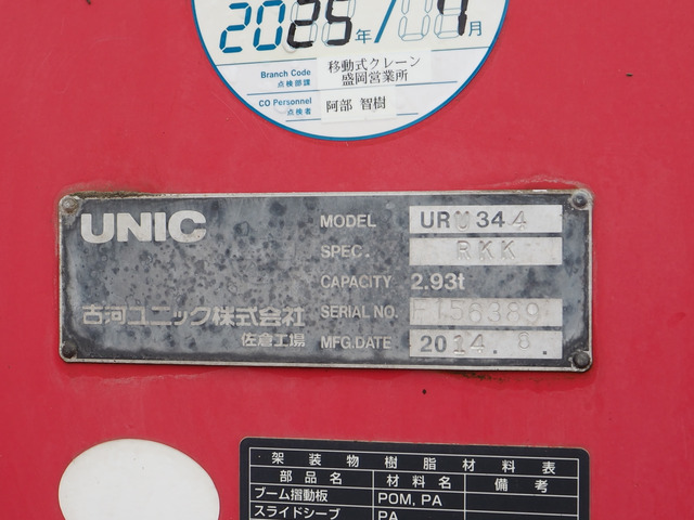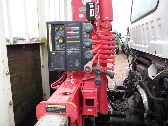 フォワード 古河ユニック製 URU344RKK 4段クレーン フックイン 2.93t吊 ラジコン付 平ボディ 三方開 内フック ロープホール 積載2.65t ターボ190馬力