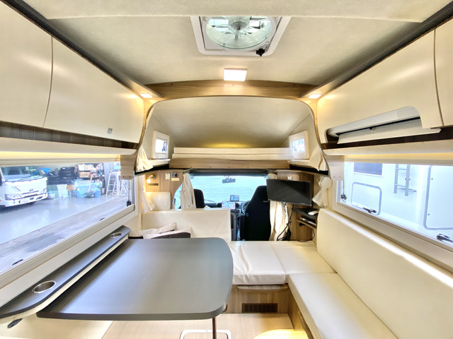 カムロード キャンピングカー ダイレクトカーズ トリッププレミアム 7名乗車4名就寝 シンク 冷蔵庫 電子レンジ リチウム300A 走行充電 外部充電 2000Wインバーター DCエアコン ソーラー