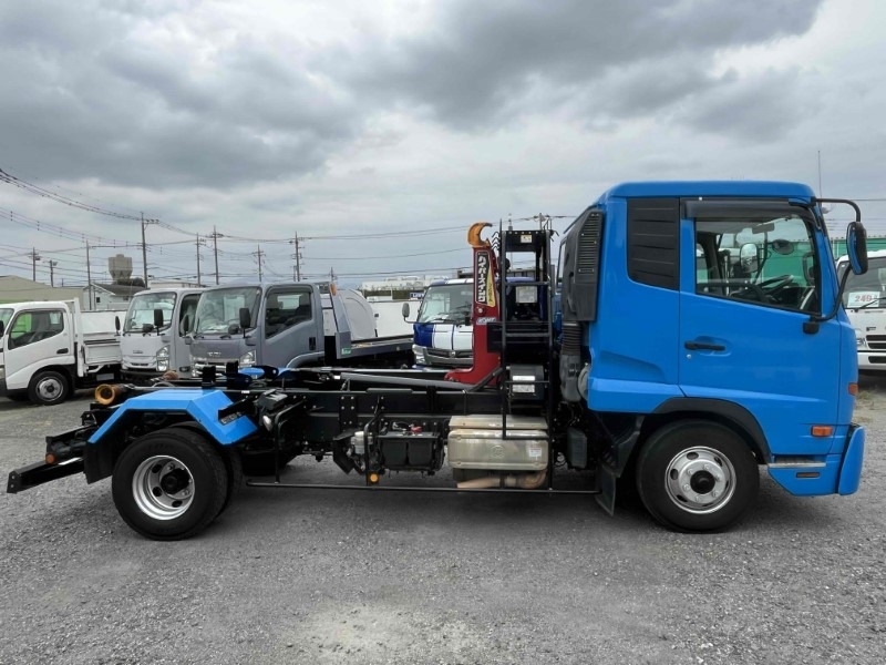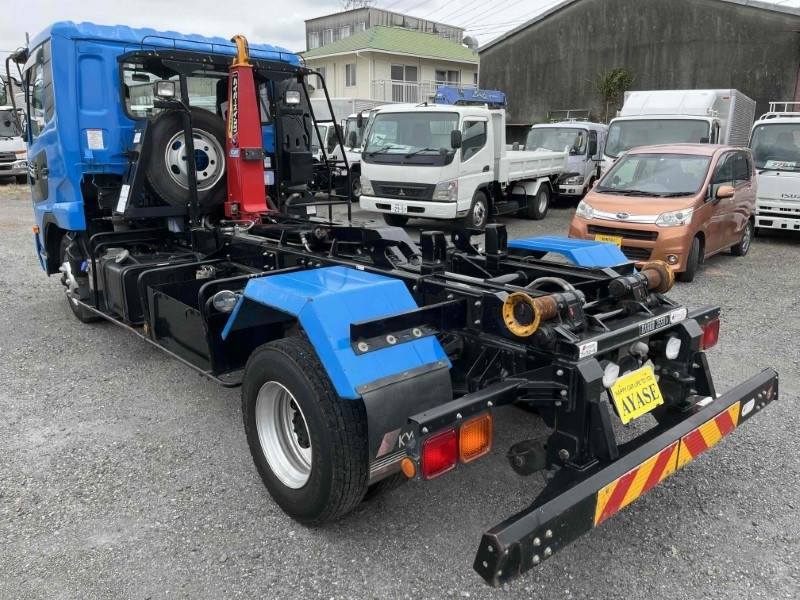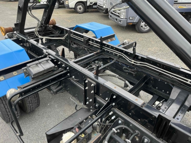 3.35t積み脱着装置付コンテナ専用車 6速MT ベッド付きフルキャブ車 極東開発製フックロール ハイパースイング JM04ー55 ラジコン付 タイヤ山6分 車両総重量7980キロ
