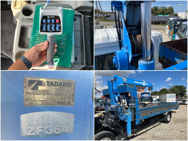 〇タダノクレーン・4段ブーム・ZF364(車体年式違い) 〇ラジコン付・フックイン・角足&差違いアウトリガー・2.9t吊り 〇5.4mボディ・ロープ穴6対・セイコーラック付(アオリ開閉補助ダンパー) 〇車検付(令和8年3月13日まで) 〇6速ミッション 〇整備記録簿平成24年から令和7年3月まであり 〇排ガス適合・マフラー再生不要 ※条例により東京都埼玉県のみ乗り入れ不可 弊社在庫一覧は商品説明文の末尾付近 ▼その他の販売店情報 その他の出品車両 をクリックいただくと一覧がご覧いただけます♪ ☆☆☆商品詳細説明☆☆☆ メーカー/車名 : 三菱ふそう/ファイター 初年度登録 : 平成14年7月 ボディ形状 : クレーン付き平ボディ 上物メーカー : タダノ 走行距離 : 205,237km 車検証記載寸法 : 長805cm幅223cm高304cm 荷台内寸 : 長543cm幅213cm高39cm 登録状況 : 車検付(令和8年3月13日まで) 最大積載量/総重量 : 2800kg/7965kg 排気量/馬力 : 8200cc/180馬力 型…