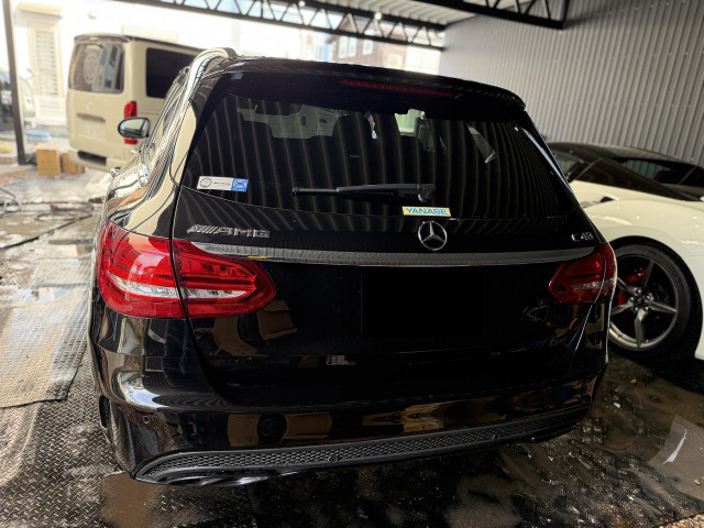 AMG Cクラスワゴンの中古車をご紹介します。平成28年式で走行距離は42,000km、修復歴なしの安心の一台です。注目すべきは367馬力を誇る余裕の動力性能とサンルーフと高級感あふれる黒革シート。ブルメスターのサウンドシステムも完備しています。安全性も高く、衝突被害軽減ブレーキやバックカメラ、横滑り防止装置など充実の装備がそろっています。ステーションワゴンとして実用性も抜群、この機会にぜひご検討ください。