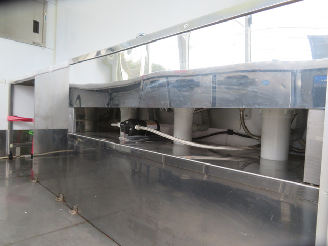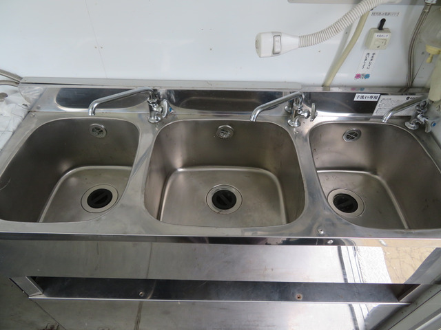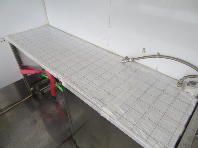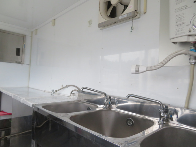 ★ご覧頂き有難う御座います。コメントを最後までご確認ください。 ◎動画を見て頂くと、上物の作動状況などが確認できますので是非ご覧ください。 ☆走行4万キロ台のキッチンカー(加工車登録)を入荷いたしました。 ☆搭載サブバッテリー2基を通したインバータ、AC100Vの付属外部電源をつなぎ、庫内電源は各部作動確認済み。装備品充実で価値ある一台かと思います。 ☆ホシザキ製の横型冷蔵冷凍庫は冷蔵容量135L、-3度〜12度/冷凍容量81L、-7度〜-23度で設定可能です。上面はステンレスフラット天板なので、調理や作業台としても重宝するかと思います。 ☆ステンレス製3槽シンク、スイッチ付き給水ポンプより吐水、衛生面にも配慮した給排水タンクはステンレス製です。前方上部にはステンレス製の引き戸棚も付き収納も優れています。 ☆ガス管も設備済なので調理器具等もつなぎ利用することが可能です。ガスを接続しての湯沸かし器付きです。(ガスタンク…