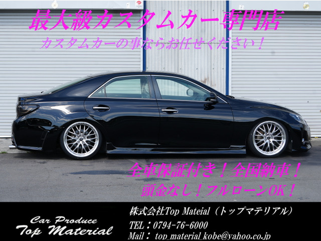 ご覧頂きありがとうございます。 ご来店前には事前にTEL0794-76-6000迄お願いします♪ 全国販売、納車OK! 頭金無しフルローン,最長120回までOK! 全国陸送納車格安キャンペーン実施中! 格安VIPカー専門店! ★走行少!7000km!マークX!前後G´s仕様! ★3眼シーケンシャルウィンカーヘッドライト! ★新品19インチAW!新品タイヤ! ★新品車高調!お好みの車高のでご納車可能! ★ソリッドブラックオールペイント済み! ★ナビ!地デジ!DVD!バックカメラ! ★スマートキー!プッシュスタート!パワーシート! 【オートローンお申込方法】 簡単・便利・スピーディーなインターネットでのローン審査が弊社HPよりお申込みいただけます!! ローン審査メールフォームよりお手続きしてください。 ★★http://www.topmaterial.jp/又は「トップマテリアル」で検索下さい★★ ■この車への「お問合せ」・「無料見積り依頼」、「在庫確認」は、お気軽にどうぞ! ■この…
