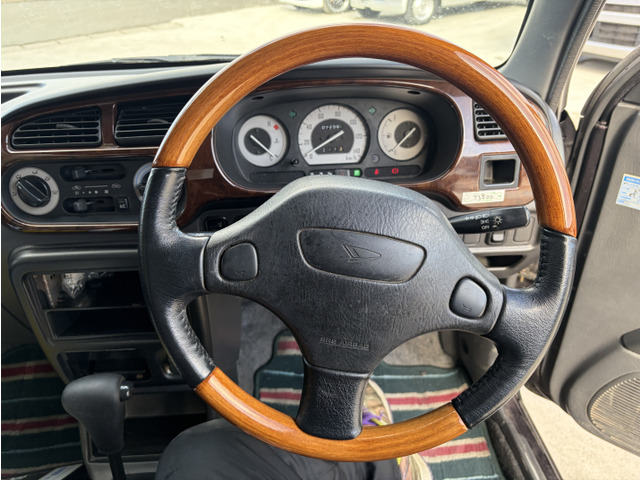 ミラジーノ プレミアムL 純正MOMOステアリング ウッドパネル パワーウィンドウ エアバック キーレスエントリー スペアタイヤ メッキバンパー 14インチアルミホイール エアコン パワーステアリング