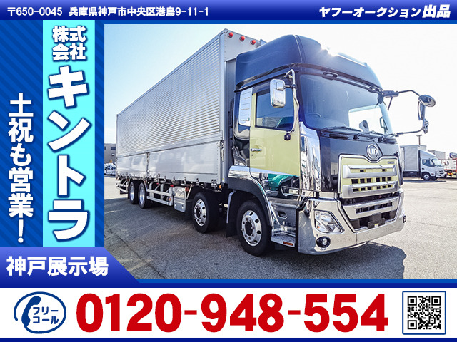 クオン 日本トレクス製アルミウイング 4軸低床 ハイルーフ 後輪エアサス アルミホイール 最大積載13,800kg 荷台寸法(長962×幅241×高263) 10トン 10t 対応免許/大型免許