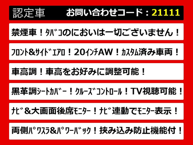 このお車をご紹介させて頂きます私は、<br>アルファードに魅せられてこの道一筋で日々勉強しているカーライフアドバイザーです。アルファードの事ならどんな事でもお聞きください。<br>なお、当社は整備においてもアルファードを熟知したアルファード専門の整備士が徹底的にチェック、整備してご納車致します。<br><br>□禁煙車両!<br>こちらのお車は禁煙車両となっております。<br>嫌なにおい、車内の黄ばみ等無くとても<br>清潔な車両となっておりますので、綺麗な車両をお探しの<br>お客様にはおすすめの一台となっております。<br><br>□【両側電動スライドドア・パワーバックドア】搭載!<br>ミニバンでは必須の快適装備となっております!<br>片側自動の車両もある中で、こちらのお車両側自動、<br>パワーバックドア搭載で御座います。<br>お車の出入りは勿論の事、お荷物の出し入れの際にも<br>バックドアが電動で開閉する為、一度使用したら<br>搭載さ…
