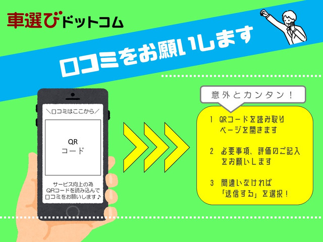 ご覧頂きありがとうございます。 ■この車への「お問合せ」・「無料見積り依頼」、「在庫確認」は、お気軽にどうぞ! ■この車両以外にも「車選びドットコム」におすすめの中古車を掲載しております。 他の在庫車種、お店へのアクセスは【販売店情報ページ】をご覧ください。 問合わせ・来店の際には「中古車情報サイト(車選びドットコム)を見た」とお伝えください。 店頭商談中・売約済の場合もありますので、ご来店の際は事前にお問合せ頂き、該当車両の有無をご確認ください。 スタッフ一同、お客様からのお問合せをお待ちしております。