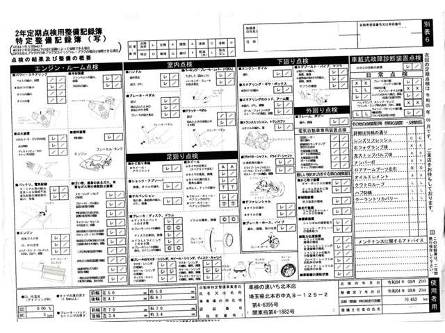 車両価格には定期点検整備に必要な費用が含まれており、点検整備記録簿が交付されます。詳しくは各販売店へお問い合わせください。