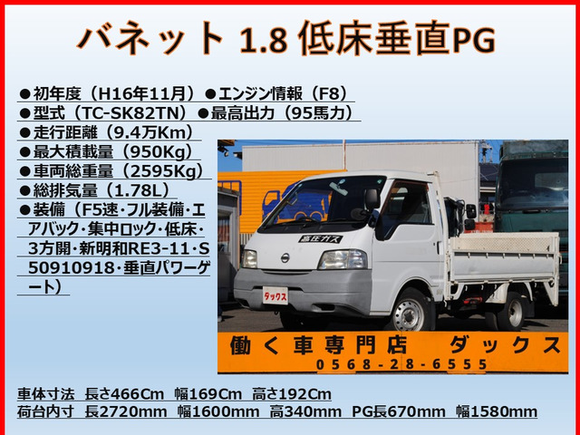 在庫確認・見積もり依頼バネットトラック 1.8 DX シングルタイヤ スーパーロー