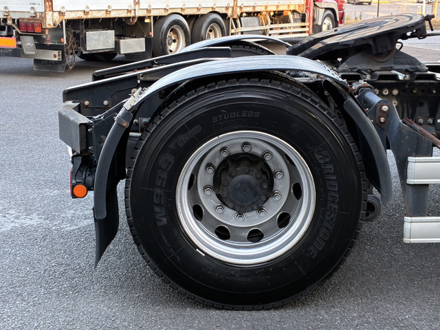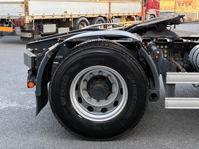 ご覧頂きありがとうございます。 ■この車への「お問合せ」・「無料見積り依頼」、「在庫確認」は、お気軽にどうぞ! ■この車両以外にも「車選びドットコム」におすすめの中古車を掲載しております。 他の在庫車種、お店へのアクセスは【販売店情報ページ】をご覧ください。 問合わせ・来店の際には「中古車情報サイト(車選びドットコム)を見た」とお伝えください。 店頭商談中・売約済の場合もありますので、ご来店の際は事前にお問合せ頂き、該当車両の有無をご確認ください。 ☆450馬力 ☆第五輪荷重11300s ☆ハイルーフ ☆G尺 ☆リアエアサス ☆キャブデフューザー付 ☆踊り場アルミ縞板 ☆プロシフト(3ペダル) ☆ブタ鼻配線 ☆永久電磁式リターダー ☆電動調整ミラー ☆ミラーヒーター ☆ステンレス燃料タンク:390L ☆ESスタート(坂道発進補助) ☆アドブルー スタッフ一同、お客様からのお問合せをお待ちしております。