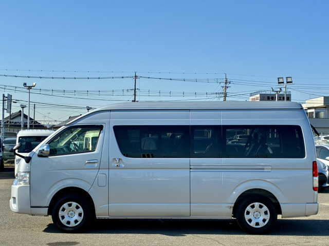 ハイエースワゴン ロング キャンピングカー 社外ナビTVバックモニター 貯水タンクシャワー サブバッテリー 100V電源 折りたたみテーブル コーナーセンサー 15インチアルミタイヤ