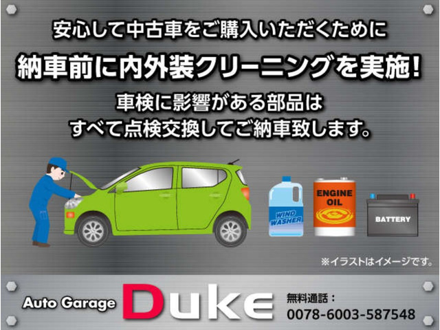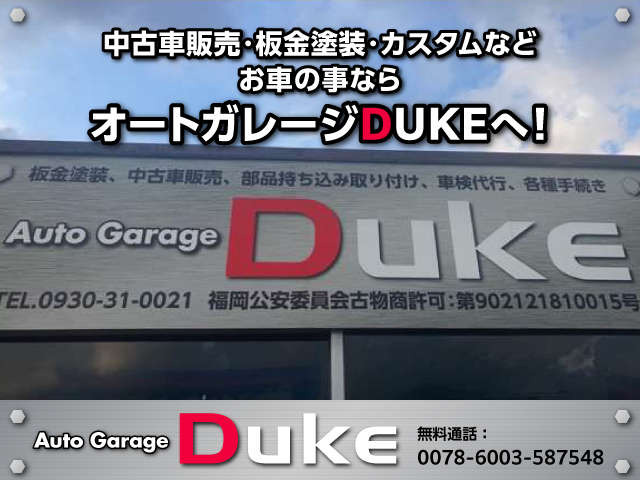 弊社のサイトをご覧いただき誠にありがとうございます。 場所は福岡県北九州市小倉南区にあります、『オートガレージDUKE』です。 『軽自動車をメイン』全国よりこだわりの中古車を厳選仕入れしております。 『国家資格の自動車整備士』がおりますので、お…