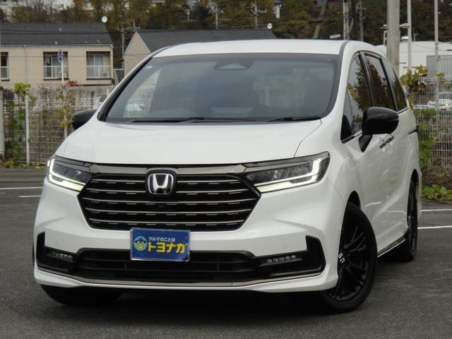 在庫確認・見積もり依頼オデッセイハイブリッド e:HEVアブソルート・EXブラックエディション 純正11.4inナビ/TV/全方位カメラ/ホンダセンシング/本革シート/HDMI/新車保証継承