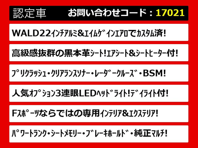 ★後期型モデル/新車価格980万円★<br>[レクサスLS460 Fスポーツ になります!]<br><br>★22インチアルミ&エアロ完備!<br><br>★連眼LEDライト完備!<br><br>★【パワートランク】搭載車両★<br>スイッチ操作でトランクリッドの自動開閉が行えます。<br>電子キー本体のワイヤレス機能や運転席のスイッチからでも<br>オープン操作が可能です!高級車ならではの快適装備です!!<br><br><br>https://www.csauto.jp/zaiko/2742