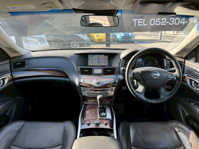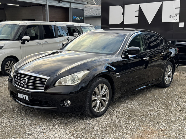 在庫確認・見積もり依頼フーガハイブリッド ベースグレード 黒半革シート/ナビTV/Bluetooth/バックカメラ/HID/ETC/前席電動シート/パワーオットマン/オートライト/スマートキー/プッシュスタート/