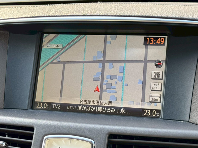 フーガハイブリッド ベースグレード 革シート ETC オートクルーズコントロール 衝突被害軽減システム バックカメラ ナビ TV アルミホイール オートライト HID AT シートヒーター