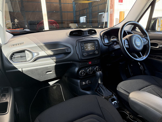 ジープ・レネゲード リミテッド ユーザー買取車・デュアルペインパノラミックサンルーフ・黒革シート・ICターボ・スマートキー・バックカメラ・Bluetooth・ETC・シートヒーター・禁煙車