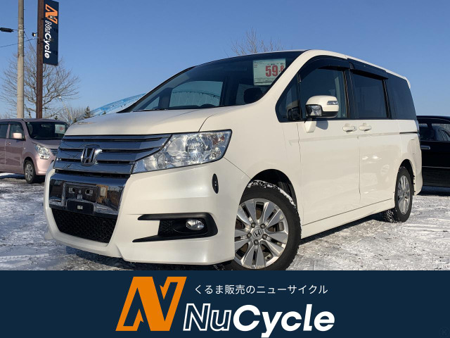 ステップワゴン G Eセレクション 4WD 1年保証付 寒冷地仕様 両側パワースライド 社外ナビ Bカメラ☆アイドリングストップ HID ETC 社外エンスタ フルセグTV