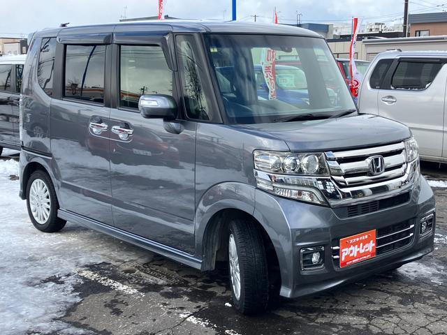 N−BOXカスタム G・ターボLパッケージ 純正リモコンエンジンスターター スタッドレスタイヤ付 両側パワースライドドア 純正ナビ フルセグTV 社外2カメラドラレコ 夏タイヤは純正アルミ
