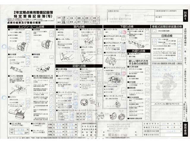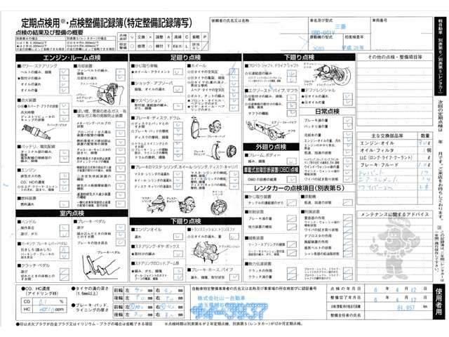 車両価格には定期点検整備に必要な費用が含まれており、点検整備記録簿が交付されます。詳しくは各販売店へお問い合わせください。