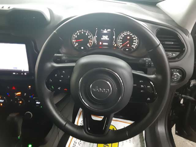 ジープ・レネゲード リミテッド レザーシート シートヒーター パワーシート ルーフレール バックカメラ ステアリングヒーター プッシュスタートシステム ETC 純正アルミ