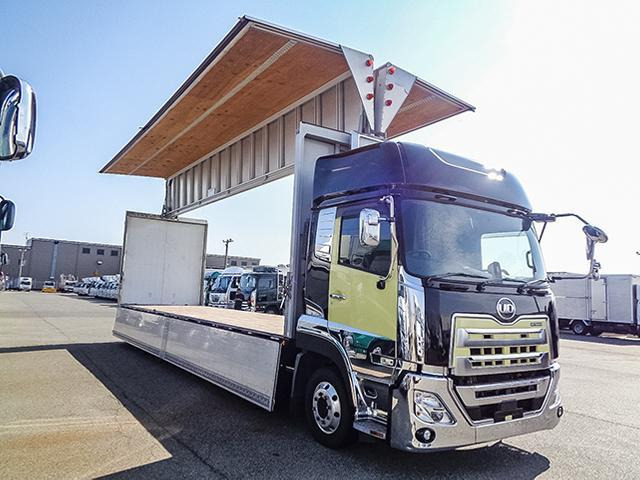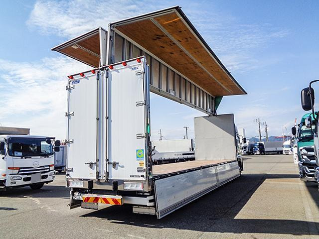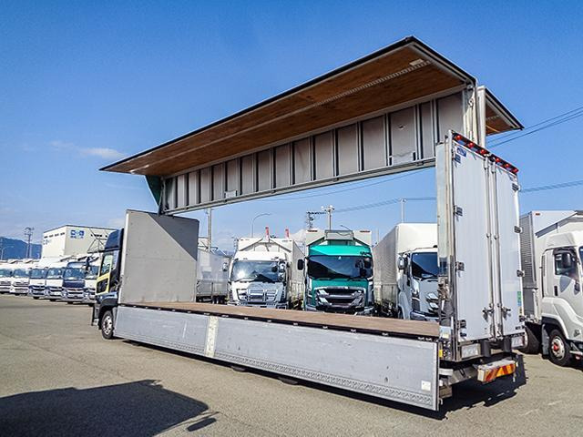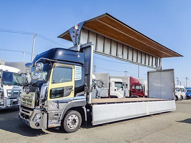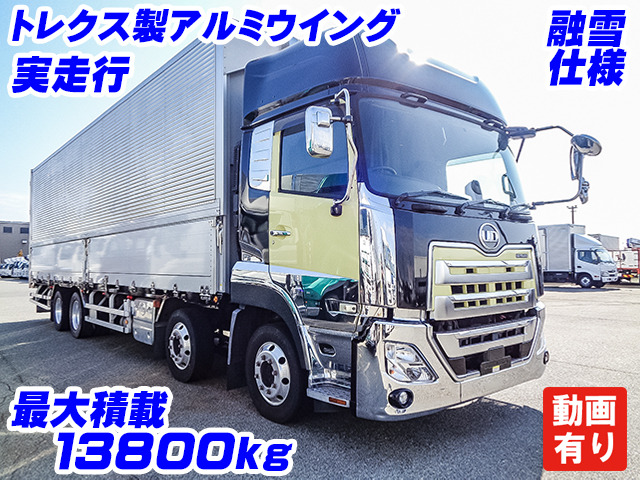 クオン 日本トレクス製アルミウイング 4軸低床 ハイルーフ 後輪エアサス アルミホイール 最大積載13,800kg 荷台寸法(長962×幅241×高263) 10トン 10t 対応免許/大型免許