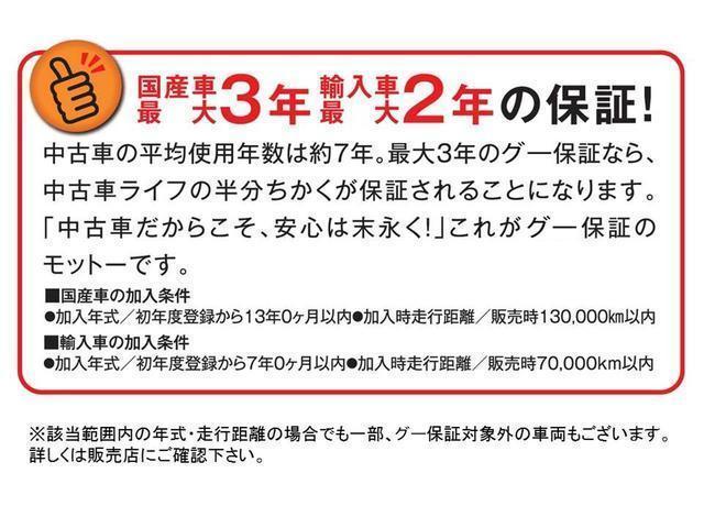 保証が付いています。車両価格には購入後の保証費用が含まれており、保証書が交付されます。保証条件や内容は販売店によって異なりますので、詳しくは各販売店へお問い合わせください。