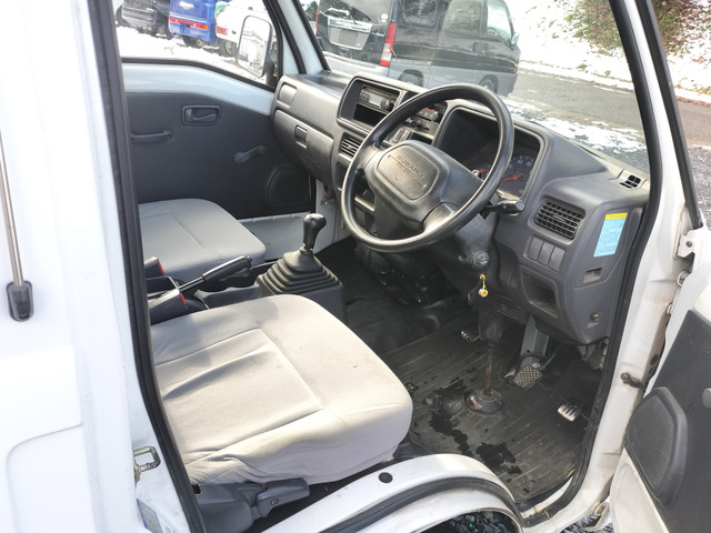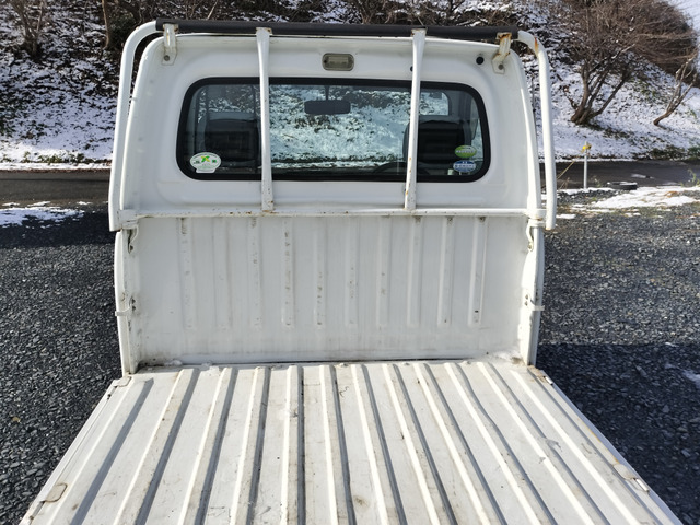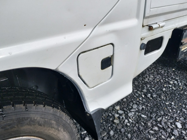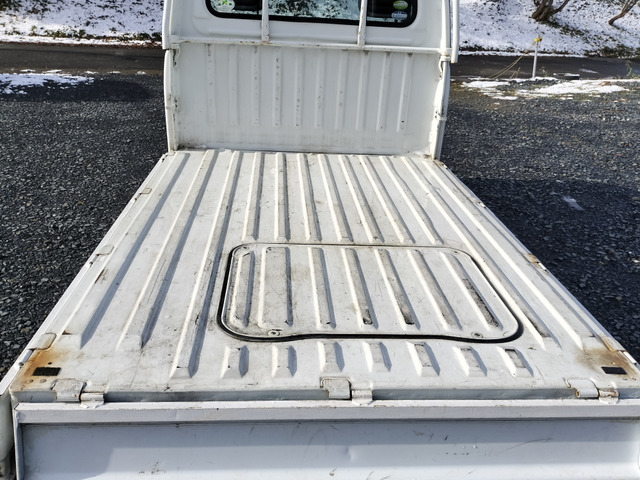 サンバートラック TB マニュアル切り替え4WD・走行35200km・エアコン無・パワステ有・エアバック無・純正フロアマット・ドアバイザ−・オーディオ・ゲートチェーン・純正12インチホイル夏タイヤ装着