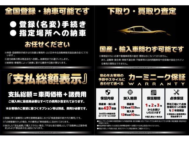 また、中古車の価格・品質に重要な影響を及ぼす「法定整備(定期点検整備)」及び「保証」を付帯する場合、その費用も車両価格に含まれます。