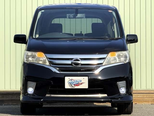 セレナ ハイウェイスター 禁煙車・ディスチャードランプ・フロントフォグランプ・3列シート・フルフラットシート・ウォークスルー・地デジ対応ナビ・後部座席エアコン・インテリキー・社外ナビ・純正ホイール