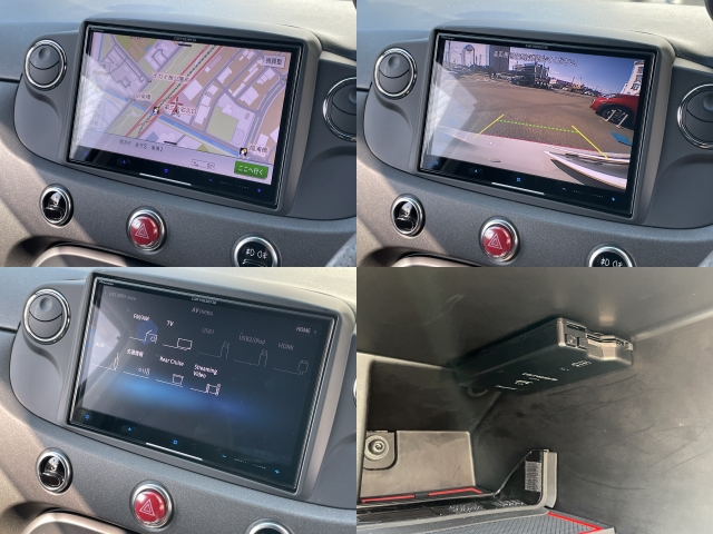 在庫確認・見積もり依頼アバルト595 ツーリズモ 認定中古車 黒革シート ナビTVETCバックカメラ サイドバイザー スモークフィルム リヤコーナーセンサー USB 保証書 記録簿 取説